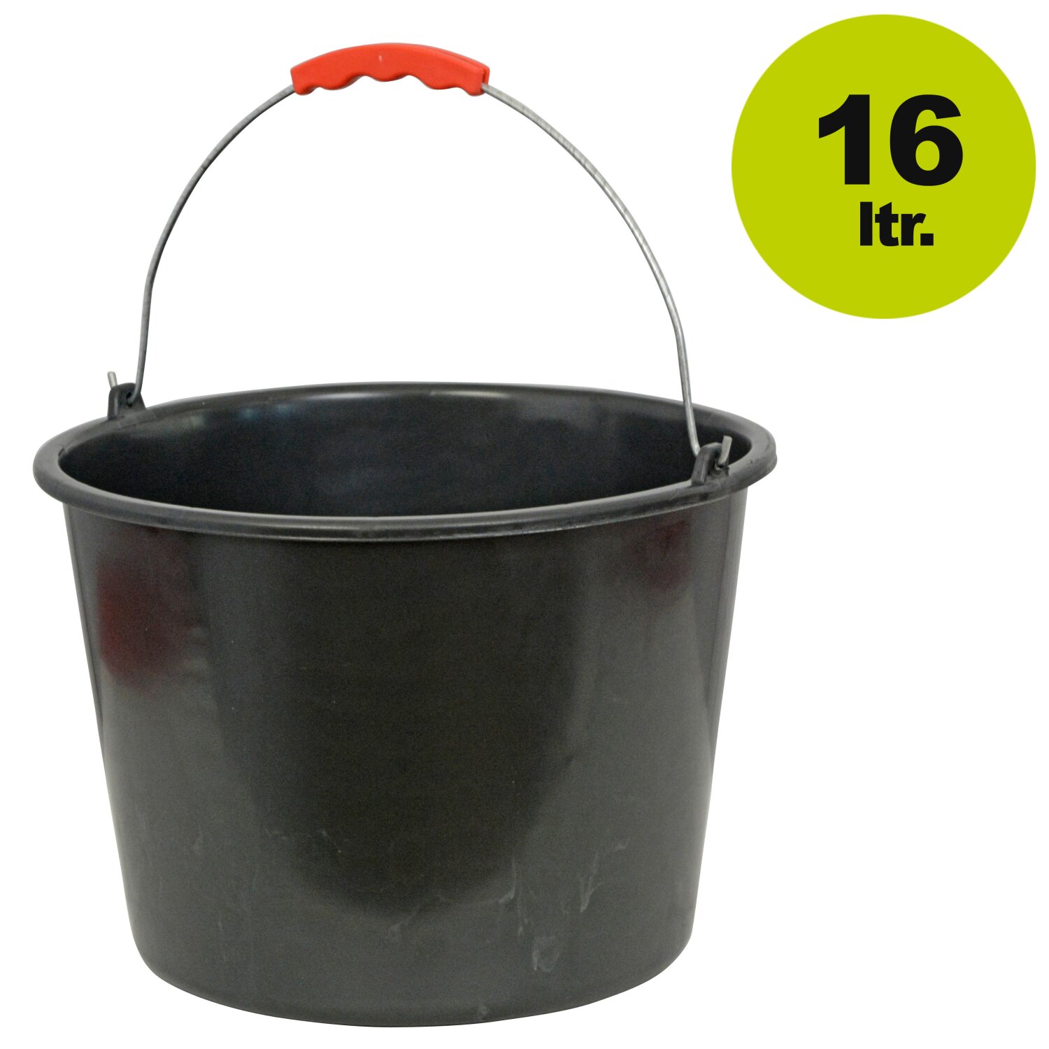 Der Baueimer 16 Liter besteht aus hochwertigem Polyethylen in schwarz. Der Boden wurde extra verstärkt und besitzt zusätzlich einen verzinkten Bügel mit Kunststoffgriff. An der Wand des Eimers wurde eine Liter-Skala integriert. Er ist besonders umweltschonend, da der Eimer recyclebar ist.