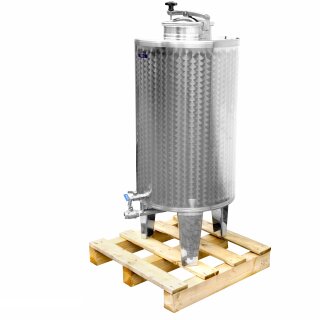 Zottel Tank: Edelstahl Branntweintank / Edelstahl-Fass 150 Liter Inhalt mit Domdeckel, Füßen / Bodenrest-Auslauf, inkl. Hahn (versandkostenfrei)