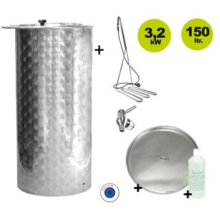 Edelstahlfass 150 Liter (Saftfass / Süßmostfass) inkl. 3200 W Speidel Tauchsieder