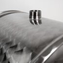 (500LK50) Zottel Edelstahlfass liegend 50 Liter Inhalt / Speiseöl-Behälter/ Lagerbehälter / Schnapsfass im dekorativen Design, lebensmittelecht, mit Hahn, Fass V2A Edelstahl 0,6mm, verschweißt, hochglanzpoliert und mit marmoriertem Schliff, made in EU