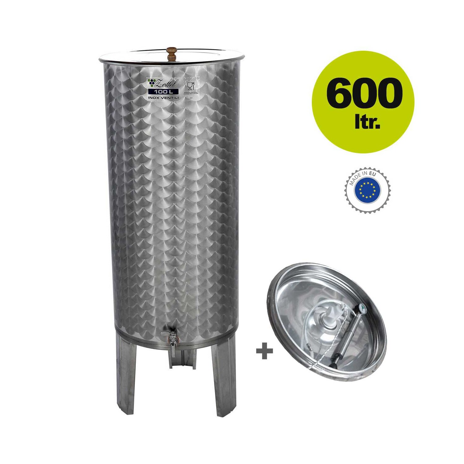(500TF600Z1) Zottel Tank SET: Edelstahltank Immervolltank / Edelstahlfass mit 600 Liter Volumen / 1 Auslauf, Immervollbehälter inkl. Schwimmdeckel, Pumpe und Manometer (versandkostenfrei)*