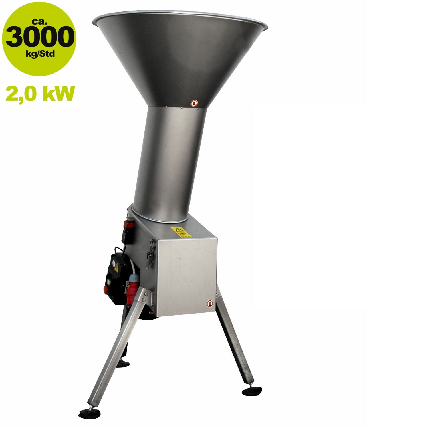 (500OME3000) Obstmühle / Obstmuser: Elektrischer Edelstahl Obstmuser / Rätzmühle OME3000, 400 V, 2,5 kW, mit 3000 kg Stundenleistung (versandkostenfrei)*
