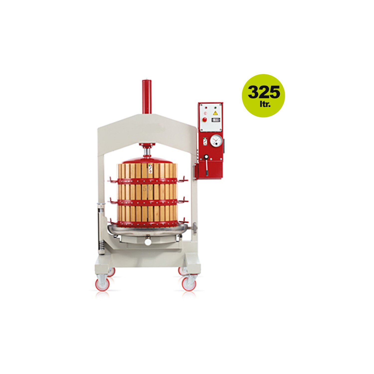 (510OPHE70) Obstpresse elektrisch / hydraulisch: Beerenpresse / Apfelpresse 325 Liter Presskorb-Inhalt, Holz-Presskorb und Fahrwagen (versandkostenfrei)*