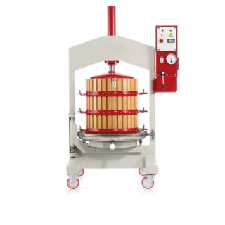 Elektrohydraulische Obst u.Beerenpresse 425 Liter Inhalt Holzpresskorb und Fahrwagen 2 fache Ausführung