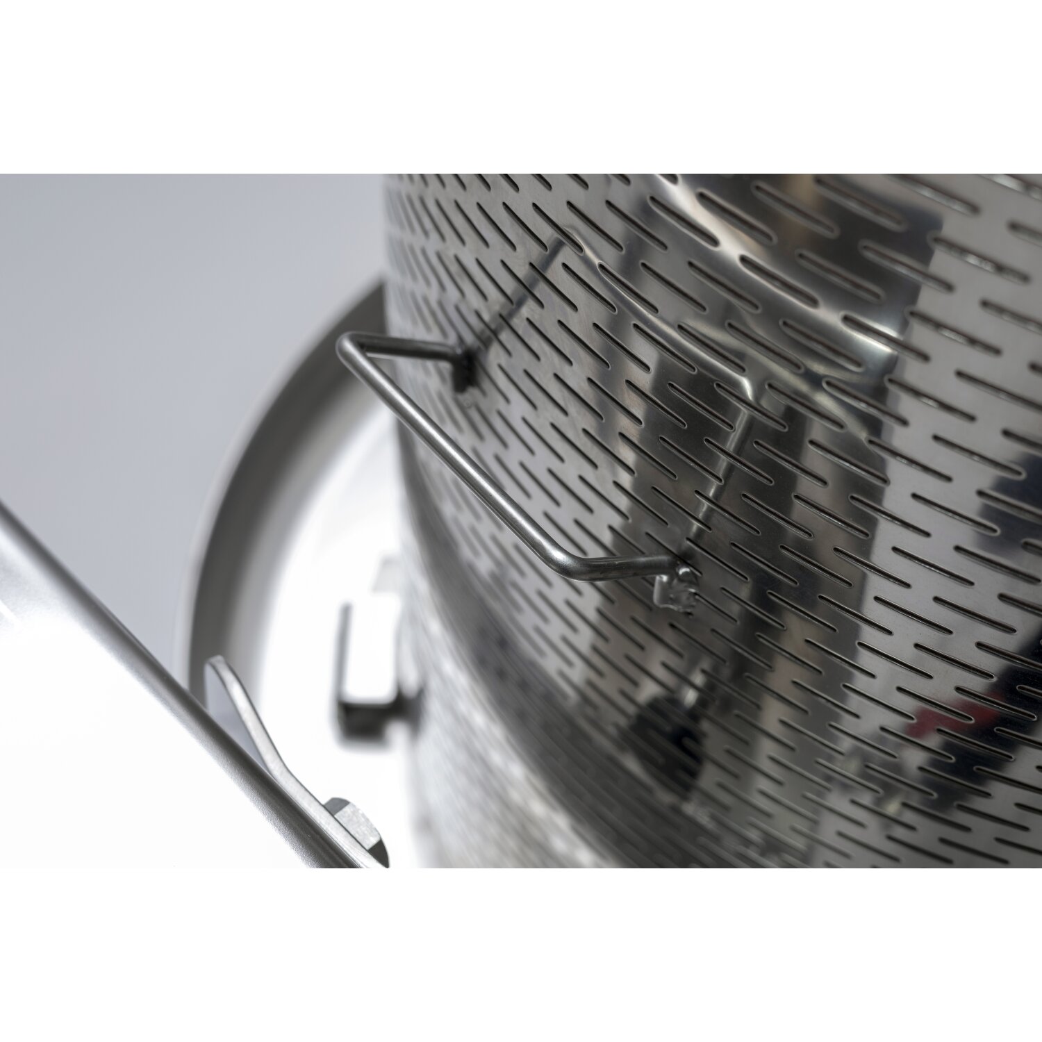 HINWEIS: Ein Spritzschutz ist meistens nur beim Pressen von Beeren (wie. z.B. gemaischte Trauben) erforderlich. Wir empfehlen hier (auch aus hygienischen Gründen) ggf. eine entsprechende, nicht zu reinigende Einwegtüte zu verwenden.
