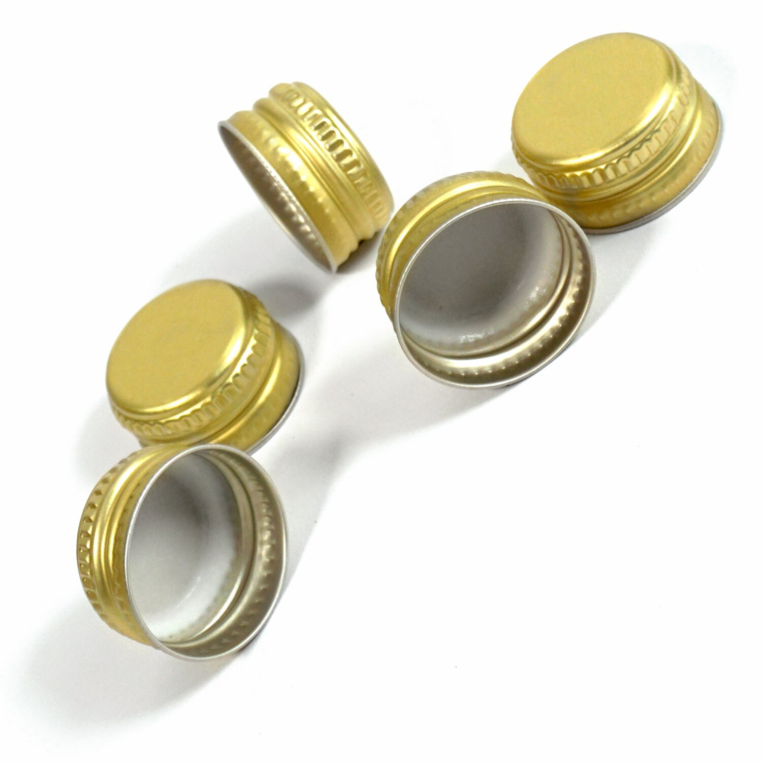 Stabile vorgefertigte Gewindeverschlüsse aus Aluminium zum Anschrauben von Hand. Kein Originalitätsverschluß.