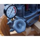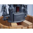 Antriebe: klassische Kelter (manuell), hydraulisch (mit/ohne Motor) oder Hydropresse. Bei Hydropressen erzeugt Leitungswasser (~2 bar) über eine innenliegende Hydromembran großflächigen Druck - sehr effiziente, kurze Ablaufwege und schneller trockener Presskuchen; Motor nicht nötig.