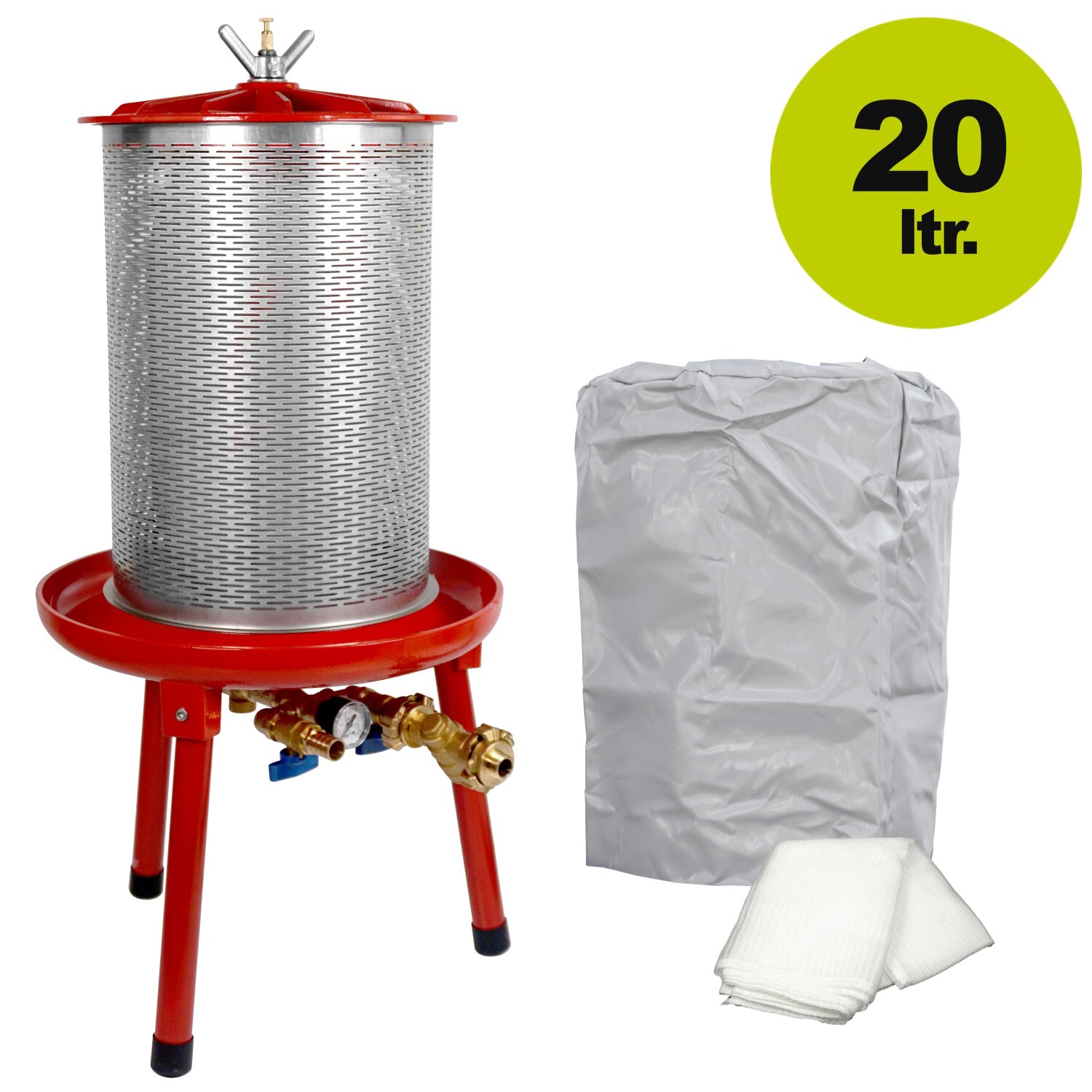 (500FP20H_) NEU nur bei Fischer-Lahr® mit zusätzlichem Druckminderer! CLASSIC Hydropresse FP20H: 20L Obstpresse/Apfelpresse, 20 Liter Edelstahl-Presskorb, rostfreie Aluminium-Presse mit Kelter-Lack, DIE Kelter-Alternative zur Spindelpresse (Versand kostenfrei *)