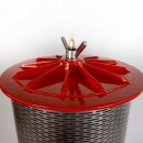 6) Entlasten: Nach der Pressung Wasserzufuhr schließen, Entlüftungsventil und Auslaufkugelhahn öffnen. Bei 0,0 bar Gewindemutter lösen, Deckel abnehmen. Trester lockern und aus dem Korb nehmen...