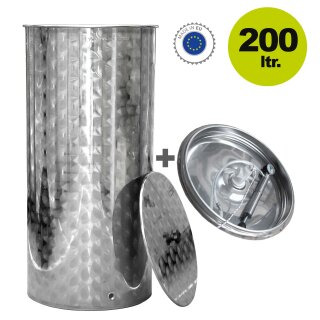 (500T200) SET: Fischer-Lahr® Immervoll-Tank Edelstahl Serie T 200 / Edelstahlfass mit 200 Liter Volumen, inkl. Luft-Schwimmdeckel, made in EU (versandkostenfrei)*
