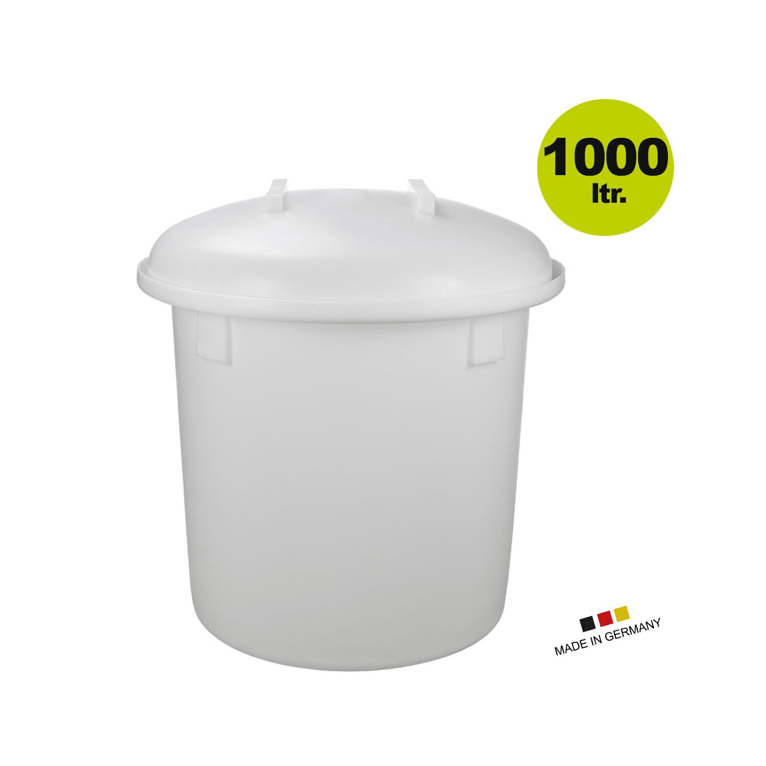 (190774674) GRAF Maischebottich 1000 Liter, aus Polyethylen ungefärbt (weiß), lebensmittelechter Bottich mit Deckel, Gärbehälter / Fass für Brennmaische mit hermetischem Wasserrand (Gärglocke), Made in Germany