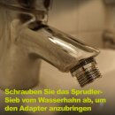 • ✔    WICHTIG: Der Anschluss erfolgt über den Luftsprudler-Anschluss Ihres Wasserhahns. Messen Sie bitte ob ihr abschraubbares Luftsprudler-Sieb (Perlator) am Wasserhahn einen Durchmesser von 22mm (bei Innengewinde) oder 24mm (bei Außengewinde) hat..... Der Wasserdruck Ihrer Leitungen sollte etwa 2-3bar betragen!