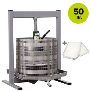 (500OPRIH50Set) Obstpresse hydraulisch: Edelstahl, 50 Liter Obstpresse Edelstahl / Beerenpresse (Traubenpresse) / Honigpresse / Apfelpresse OPRIH50, mit Presstuch, hydraulisch, 5t Pressdruck (versandkostenfrei)