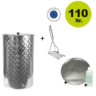 (330Saft100A-SET) Saftfass 110 Liter mit Schwimmdeckel: Edelstahl-Apfelsaftfass/ Fischer Saftfass (Süßmostfass), Komplettset mit Speidel Tauchsieder und Edelstahl-Auslaufhahn für pasteuristierten Saft