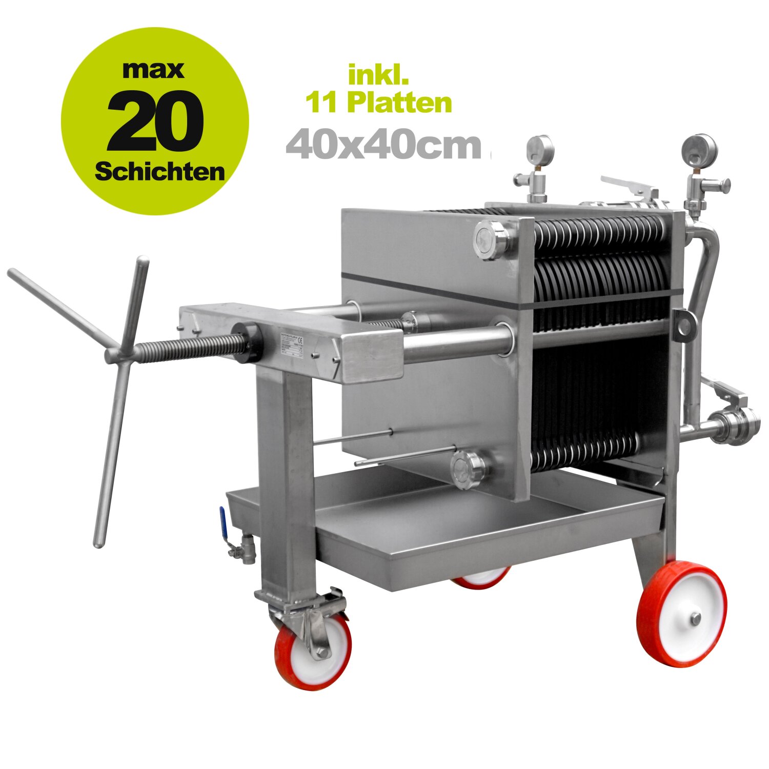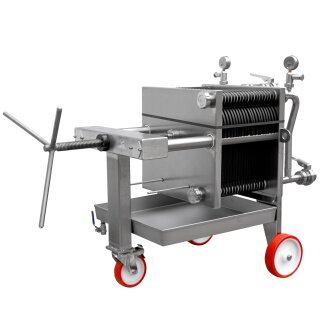 (510SF40-10) Schichtenfilter: Weinfilter-Maschine Fischer, inkl. 11 Filterplatten 40 x 40, für max. 20 Schichten, ohne Pumpe, Edelstahl-Gehäuse, fahrbar, Weinfilteranlage made in EU (versandkostenfrei)*
