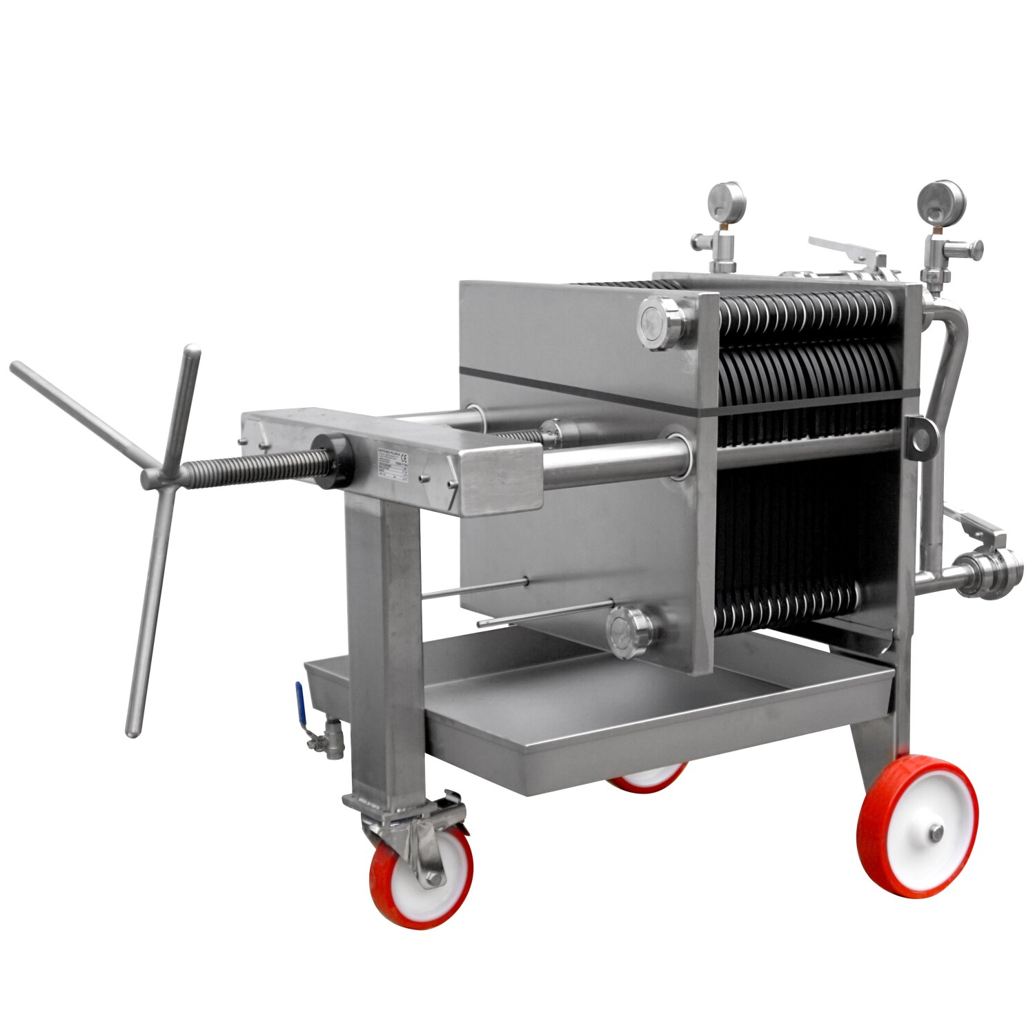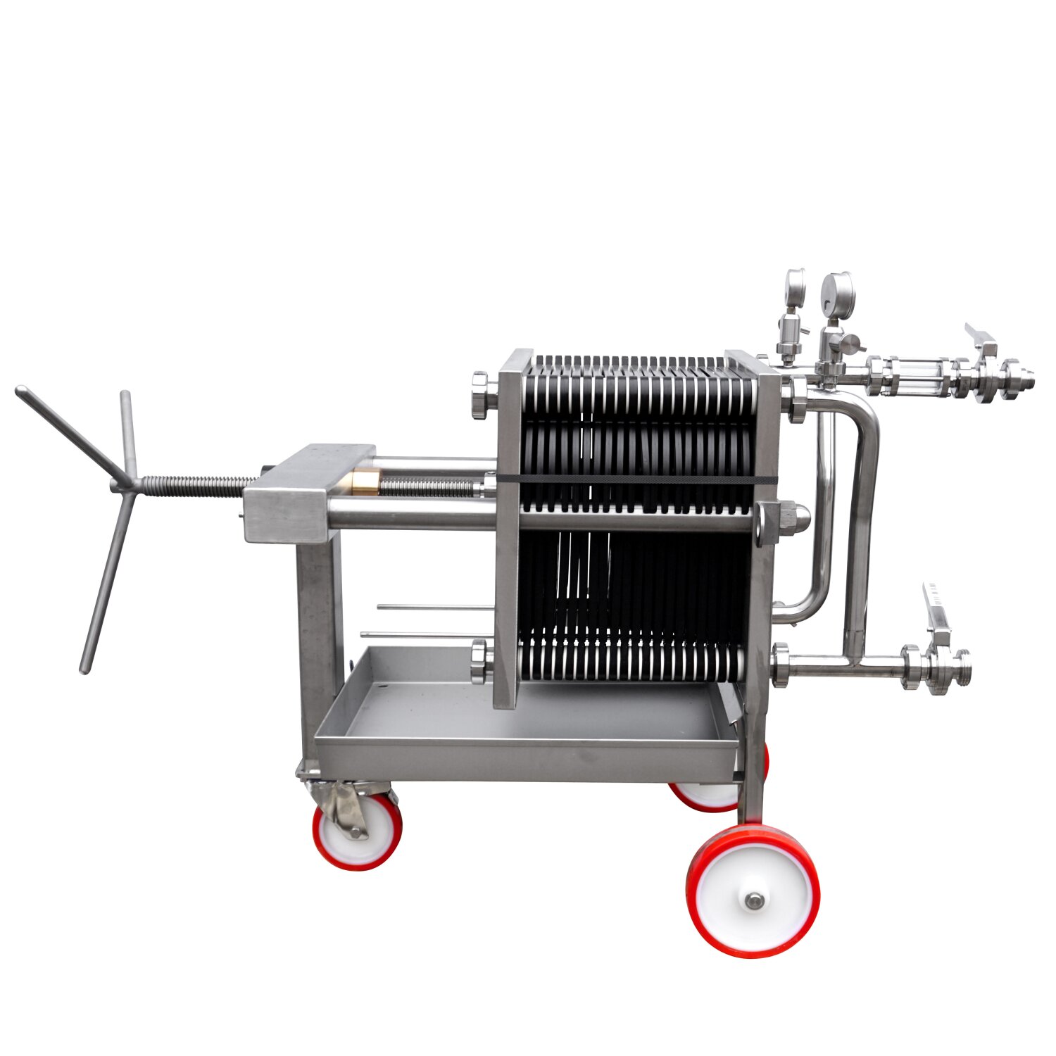 Filtergestell Edelstahl für max. 40 Schichten fahrbar mit Zentralspindel.