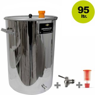 Das Set enthält das Universalfass 95 Liter, Gärspund und 3/4" Auslaufhahn.