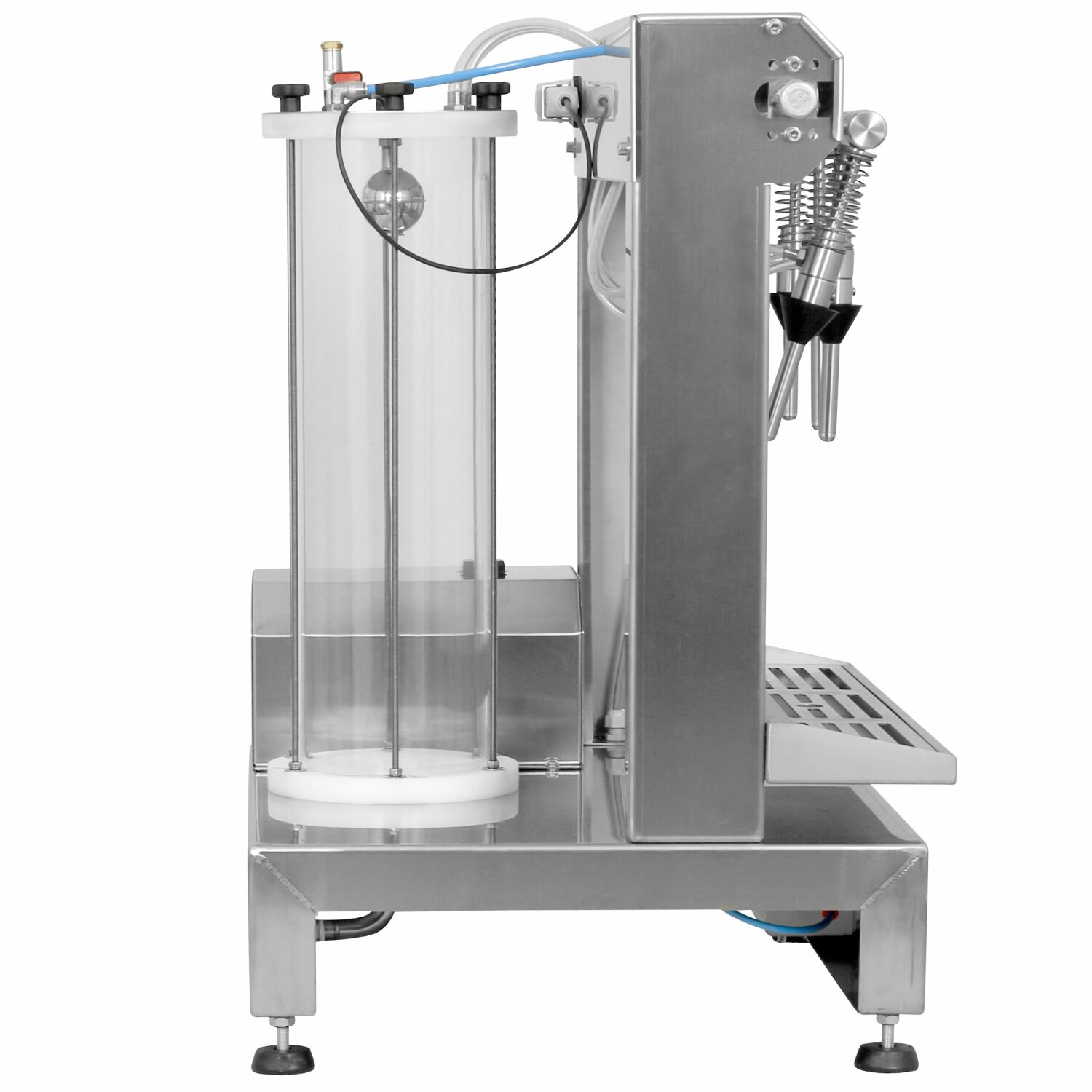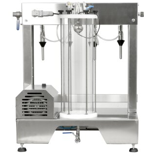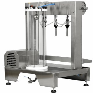 Universell einsetzbare Edelstahl Vakuum-Füllmaschine zum Flaschen abfüllen. Abfüllgerät zur schonenden und hygienischen Abfüllung von flüssigen Lebensmitteln, da das Lebensmittel weder mit mechanischen Teilen noch mit Luft in Berührung kommt.