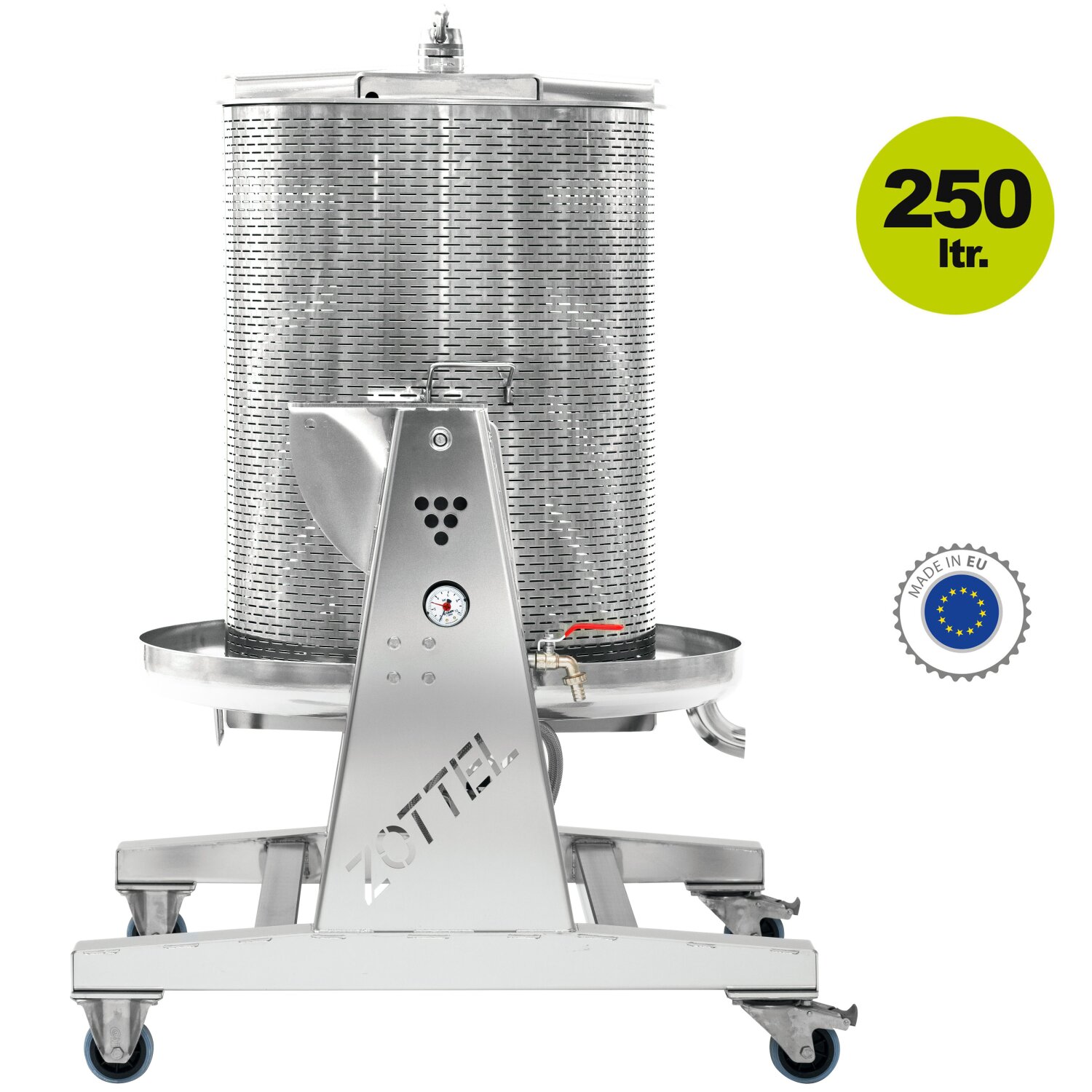 (500HPE250K) Top Profi Obstpresse aus Edelstahl: Zottel Hydropresse / Beerenpresse (Traubenpresse) / Apfelpresse HPE250k, Wasserdruck-Presse 250 Liter Inhalt, Presskorb kippbar, hoch glänzendes Finish durch elektro-polierten Edelstahl (versandkostenfrei)*