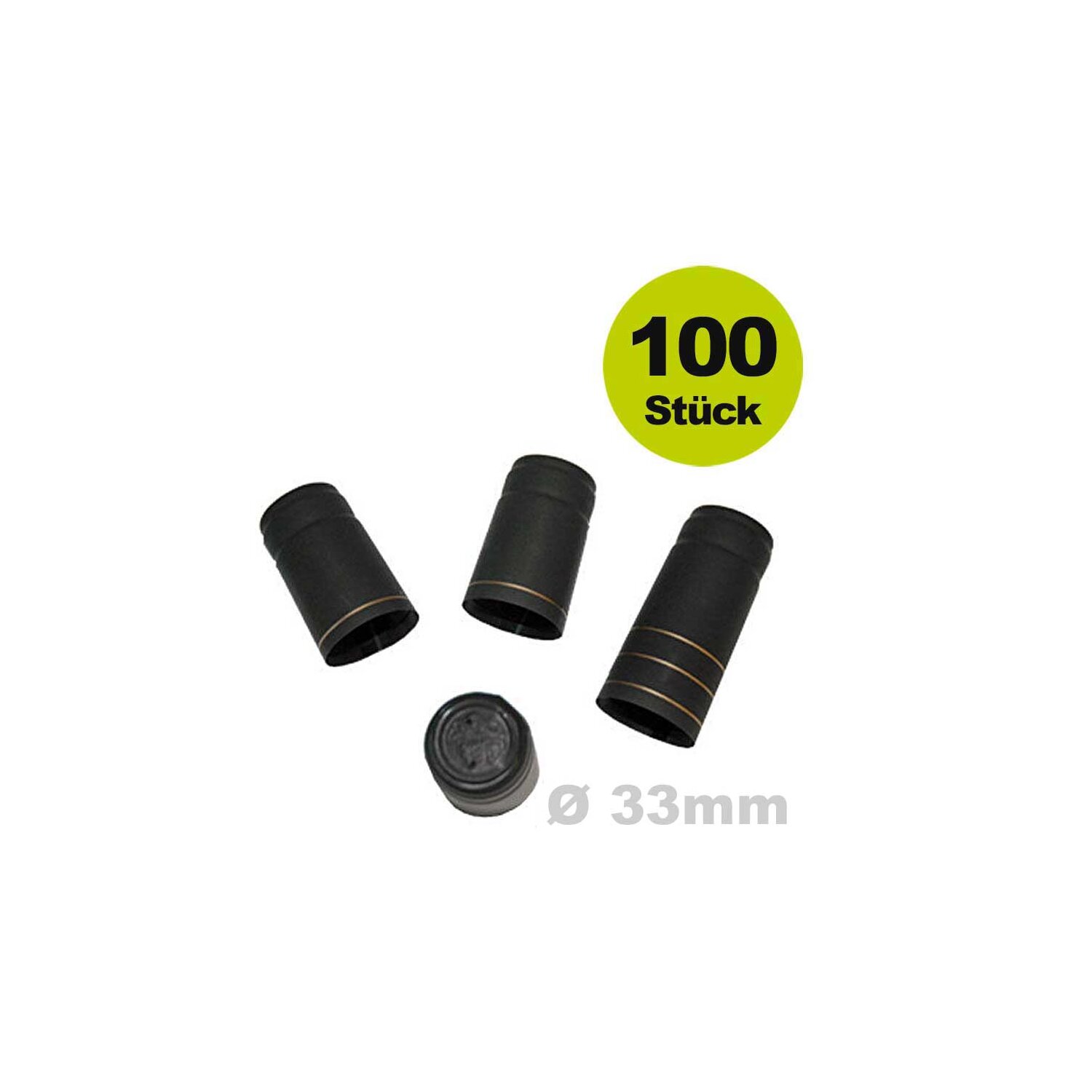 Weinflaschen-Kapsel: Schrumpfkapsel schwarz mit Goldrand 33x55 mm, 100 Stück