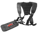 Komfortabel und funktional, mit individuell einstellbaren Schultergurten - passend für jede Statur. Der Vorteil dieses Tragegurtes ist ganz klar der, dass sich das Gewicht des Freischneiders auf vier Körperpunkte verteilt (vergleichbar mit einem guten Wanderrucksack) und somit die Arbeit deutlich erleichtert.
