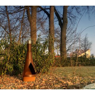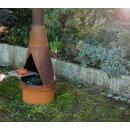 Design: Archäischer Rost trifft auf glänzenden Edelstahl. Genießen Sie die zeitlose und unaufdringliche Eleganz dieses funktionalen Grill-Kamins in ihrem zu Hause. Jedes Stück ist auf Grund der speziellen Korrosions-Umstände  ein Unikat!